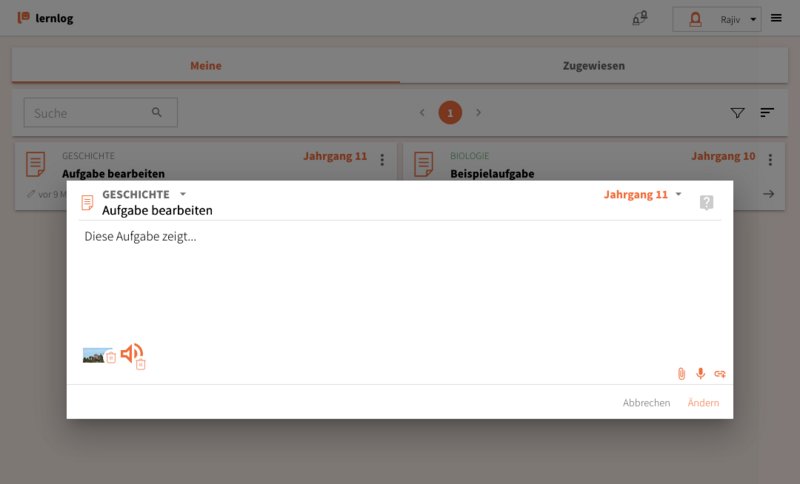 - Hast du Bearbeiten ausgewählt, kannst du in der Detailansicht der ausgewählten Aufgabe die folgenden Einträge anpassen:
