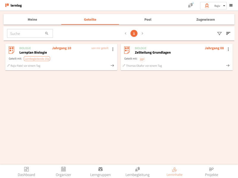 - Geteilte Lernpläne sind die Lernpläne, die du mit anderen Lernbegleitenden geteilt hast oder die mit dir geteilt wurden.