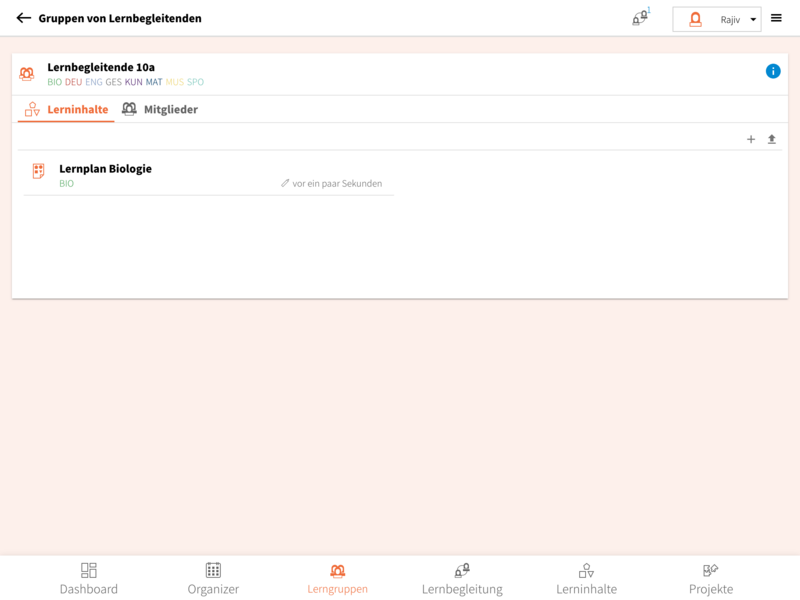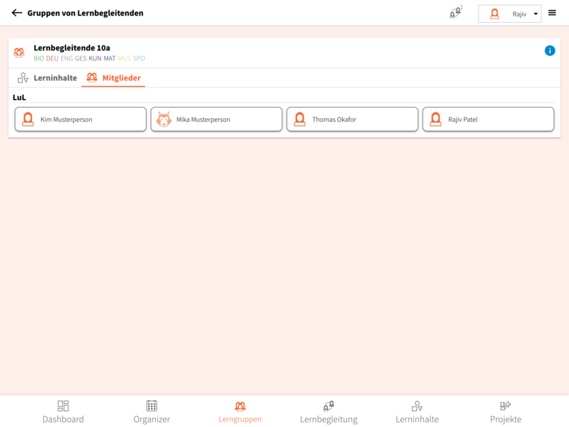 • Mitglieder: Als Mitglied einer Gruppe von Lernbegleitenden kannst du hier die weiteren Mitglieder der Gruppe betrachten.