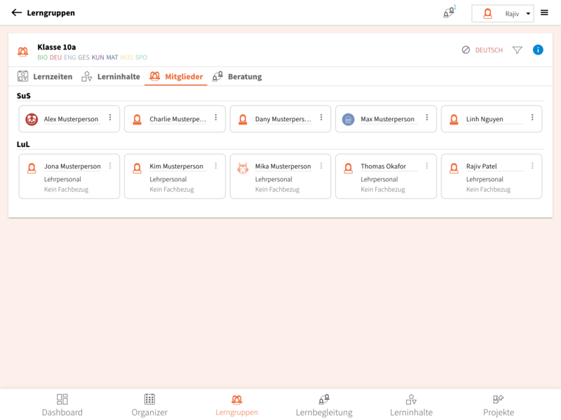• Außerdem kannst du sehen, ob die jeweiligen Gruppen von Lernbegleitenden aktuell aktiviert sind.