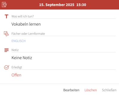 • In der "Bearbeitungsansicht" kannst du alle Informationen ändern, die bei der Erstellung des To-Dos eingetragen wurden.