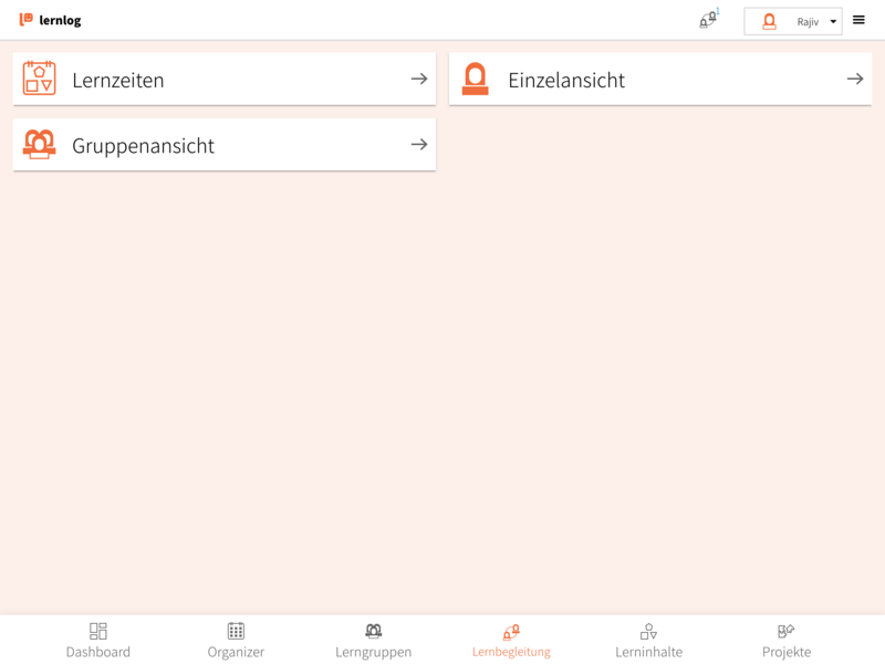 • Um in den Bereich "Lernbegleitung" zu gelangen, wählst du unten in der Navigation den entsprechenden Menü-Punkt aus.