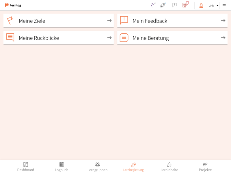 - Um in den Bereich "Lernbegleitung" zu gelangen, wählst du unten in der Navigation den entsprechenden Menü-Punkt.