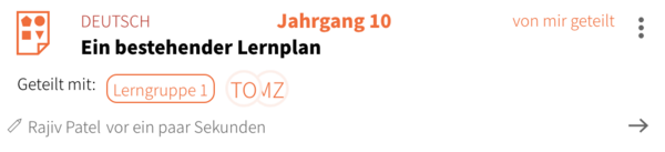 - Grundsätzlich erscheinen dort alle geteilten Lernpläne, sowohl die "von dir geteilt wurden" als auch jene, die "mit dir geteilt" wurden. Diese Unterscheidung wird dir mit einem Texthinweis angezeigt.