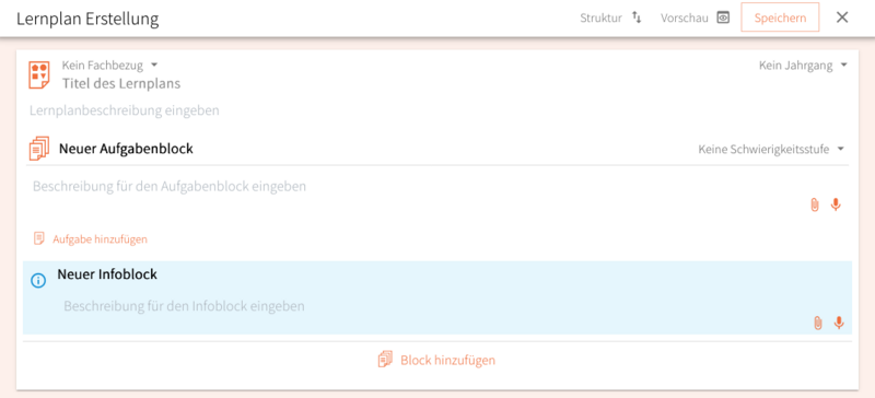 • Ein Lernplan enthält im Normalfall zwei Kategorien von sog. Blöcken: