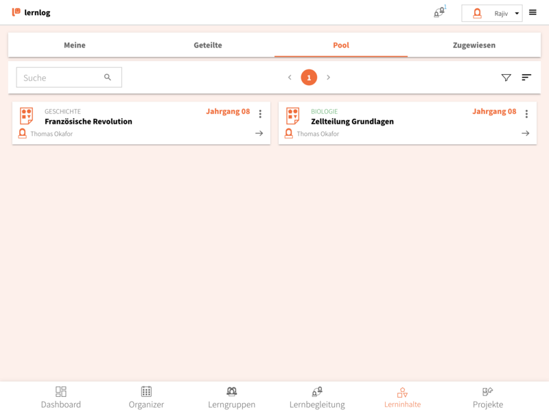 - Der Lernplan-Pool enthält alle Lernpläne, die