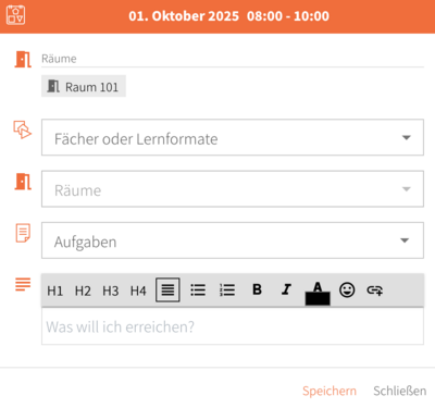 • Lernzeiten sind in lernlog Zeiträume, innerhalb derer Lernbegleitende eine mögliche Auswahl an Fächern oder Lernformaten, sowie Räumlichkeiten vorgeben (siehe auch Lernzeitserie).