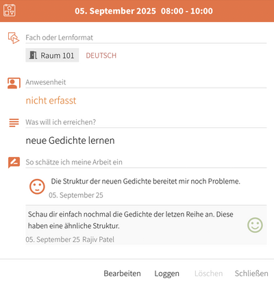 • Als Lernbegleitende*r kannst du im Anschluss Feedback in Form von Smileys, Text oder Audionachrichten an deine Lernenden geben, um deine Einschätzung zum Arbeitsverhalten der Lernenden einzubringen.