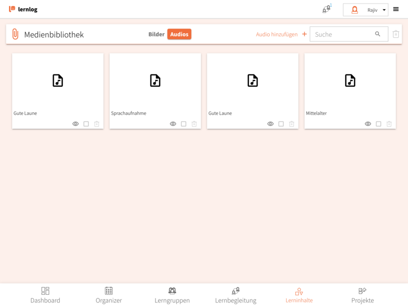 - In der Medienverwaltung kannst du Bilder- und Audio-Dateien verwalten, bearbeiten, hochladen und löschen.