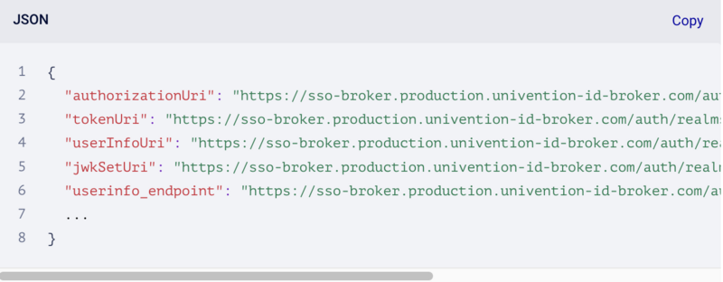 - Die restlichen, notwendigen Daten findet man im JSON-Format hinter der OpenID Connect-Metadaten-URL (z.B. https://YOUR-ID_PROVIDER_URL/.well-known/openid-configuration, oder