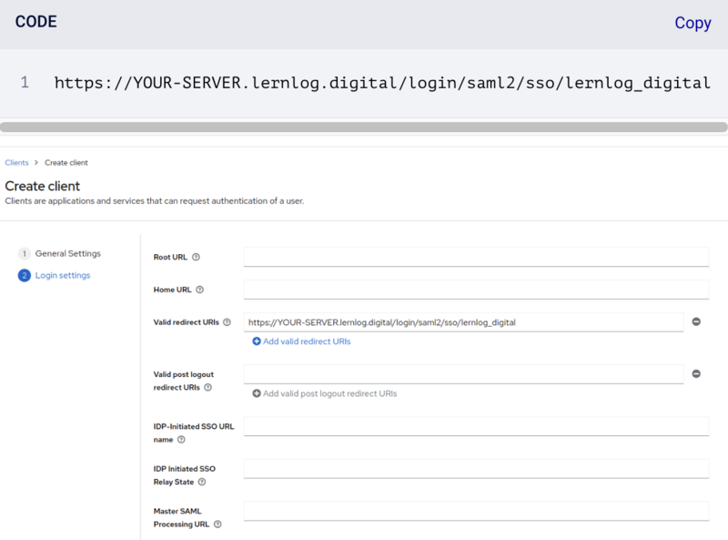 - Um die SAML-Schnittstelle für den Single Sign-On (SSO) via Keycloak in lernlog zu aktivieren, müssen sowohl Einstellungen innerhalb deines Keycloak-Systems als auch innerhalb von lernlog vorgenommen werden.
