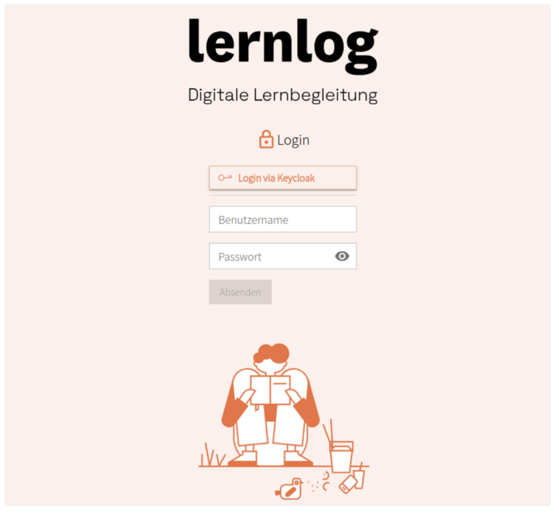 - Wenn die Konfiguration durch den Support in lernlog aktiviert wurde, erscheint auf dem Login Screen die Login-Möglichkeit via Keycloak.