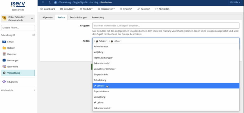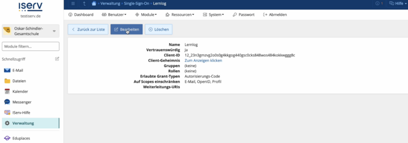 - Auf IServ-Seite ist jetzt soweit alles eingerichtet.